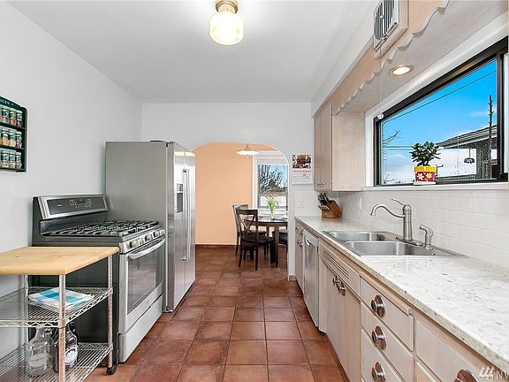 Beautifully updated 4-bedroom home in desirable Loyal Heights awaits you! Period details with hardwood floors, Batchelder fireplace, amazing built-ins and original cabinetry hardware. Bright kitchen with granite counters, SS appliances and eat-in nook. Updated gas furnace, water heater and plumbing. Fully fenced backyard with apple and cherry trees, large detached 2 car garage & add dedicated alley parking. Steps to Ballard restaurants & bars, Golden Gardens and award winning schools and more!