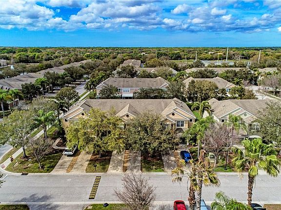 Welcome to your new home in Sabal Bay; a gated, maintenance free Pulte Homes townhome community. This move in ready condo offers great walkability to Fresh Market and lots of great eating establishments! Equipped with community pool, the neighborhood is also located in the midst of all the action yet tucked behind ample landscaping for some privacy too. No CDD fees! Not to mention, the pool is located directly across from this property but the lanai faces the opposite direction! This 3b/2.5ba bath layout offers all bedrooms upstairs on a split plan. Walking into your unit, you can come in from either the 1-car attached garage or your front foyer entryway. Convenient half bath downstairs along w/large kitchen that is really open to the living space & back lanai. You'll immediately notice the spacious screened lanai in the back that brings in that Florida light as well as the lush greenery in the backyard space. With crown molding and neutral paint throughout, this property has lovingly been cared for by the sellers. Master suite offers vaulted ceilings, walk in closet and is fit for a king sized bed. Master bath has dual sinks and large soaking tub/shower combo. Two additional bedrooms share a hall bath. Washer/Dryer on upper level. Tile flooring throughout entire main level. Sabal Bay is a hidden jewel located off of Honore & University Pkwy, which is a walk to Fresh Market and restaurants!! Don't miss the playground area either. Minutes from UTC Mall, bike to Whole Foods, Home Depot, shops & restaurants. Easy access to I75 and Sarasota Airport. This unit shows really. Water & trash in monthly fee too. Check out this easy to view property!