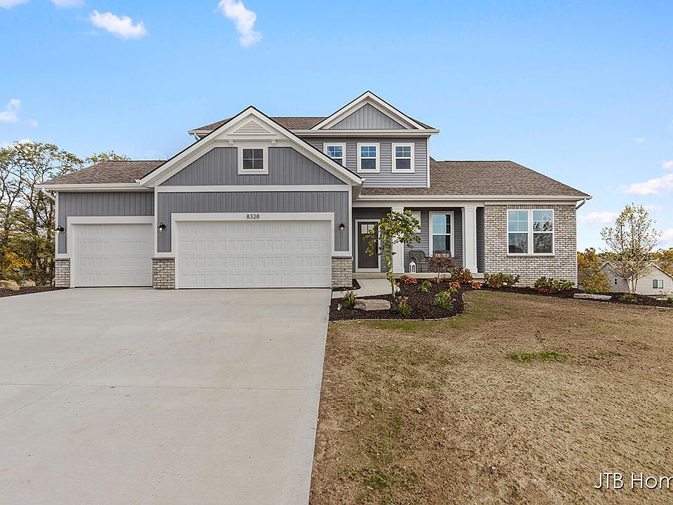 JTB Homes presents this ''Sycamore'' in Eagle's Ridge. Entrance off the 3 stall garage brings you to a large mudroom with walk in closet and half bath. The kitchen boasts of upgrades like solid surface counters, shiplap hood fan, and a deluxe GE appliance package. The dining area gives access to the 12x12 deck, and a spacious living room. Cali vinyl flooring throughout the living, dining, entry, and kitchen area. The main floor primary suite includes cathedral ceilings, premium tiled shower, tiled flooring, solid surface counters, water closet, and a huge walk in closet. Also on the main is laundry and a flex room. The second floor adds 3 bedrooms, another full bath, and a loft area. Landscaping included! See attached documents for lender promo info.