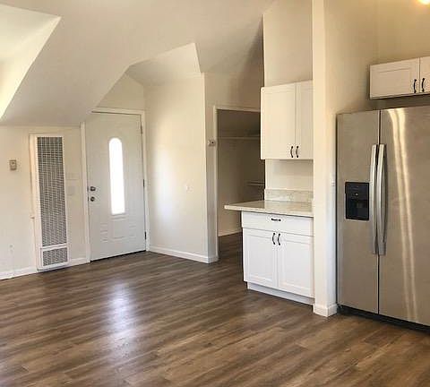 Spacious one bedroom one bath apartment with a private entrance on a quiet cul de sac street in Northridge. Tired of apartment living and noisy neighbors? This is a privately owned one bedroom unit above the garage with engineered hardwood floors throughout, stainless steel appliances, new kitchen cabinets, a/c and a washer and dryer! Living room features open floorplan with tall beamed ceilings, dual pane windows, ceiling fan and hardwood floors. Kitchen has new stainless steel appliances including a refrigerator, stove oven, microwave (no dishwasher) and quartz countertops. Spacious bedroom has a ceiling fan and a separate sitting area. Plenty of storage space including 2 closets and built-in linen closet. Remodeled bathroom comes with shower over tub and 2 built-in hampers. Private washer and dryer in unit for your convenience and plenty of street parking. NO SMOKING The property is professionally managed by a property manager. The owner lives in the main house and prefers to stay private. Please contact Anastasia to schedule an in person showing. Spectrum Internet $50 optional. Utilities $150/mo for single occupancy or $200/mo for double occupancy.