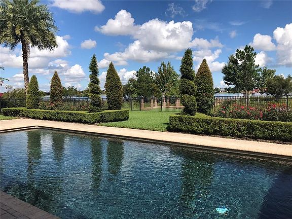 This exquisite Keene's Pointe property is more than a home, it's a lifestyle! Delivering the finest in quality and functionality, this custom lakefront 4BR/4BA, 4,992 sf saltwater pool home is guaranteed to impress. Positioned perfectly on a beautifully landscaped, over half acre lot, the open floor plan brings the serenity of the outdoors in. From the expansive great room, kitchen, and dining room spaces to the covered lanai with gas fireplace, summer kitchen, and remote screen enclosures, you will enjoy picturesque views of Lake Burden from every room. The Kitchen is fully outfitted with stainless steel GE Monogram appliances, 6 burner gas range, center island with storage, granite counter tops and solid wood cabinetry. The grand, first floor Master Suite offers his and hers closets and spacious en suite with separate walk in shower and soaker tub. There are 3 additional bedrooms and 2 bathrooms on the second floor along with a large bonus room, separate work area with built-in desk, two extended balconies, and Media Room with six cozy recliners, and a built in wet bar. Media Room can easily be converted to a 5th bedroom/bathroom. Additional Features Include: 13' Ceilings, Plantation Shutters, Crown Molding, Granite Counter Tops, Solid Wood Cabinetry, Imported Hardwood and Travertine Flooring, Over sized Laundry Room with Utility Sink & Storage, Water Filtration System, Fenced Yard, Recently Updated Dock with Boat House & Lift, and tons of storage including built in storage closets in the 3 car garage.