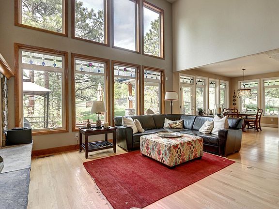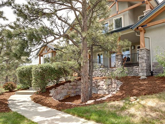 This beautiful home is located in the Timbers at the Pinery sits on just under an acre of land, five bedrooms and five baths with open floor plan vaulted ceilings, stunning fireplace, main floor laundry with mudroom, unobstructed views of Pikes Peak, two master bedrooms, gourmet kitchen, walkout garden level basement with game room, pool table included, park located across street, new water purifier system, whole house humidifier, top of the line ADT smart alarm system newer furnaces and water heaters, make this your forever home.