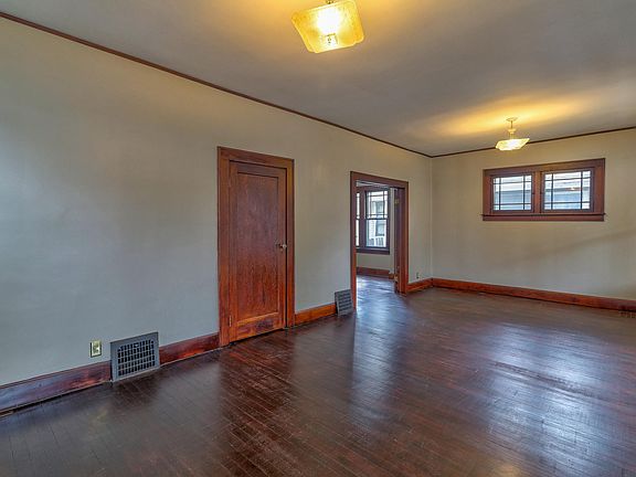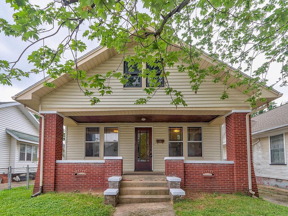 This great bungalow is a 2 bedroom, 1 bathroom gem that has been beautifully restored to it’s original charm! Throughout the home, the original features shine: original hardwood floors, wood-detailed window panes, front door, and French doors, all wood trim and doors. Updates have been made for modern convenience while maintaining character, including all new wiring, new water heater, and more. You’re greeted by a large, welcoming front porch. Step inside to the spacious living room with natural light pouring in through the windows. The gorgeous French doors lead you into a large formal dining room that also has several large windows. The kitchen has been updated with new white cabinets, new stainless steel appliances, and countertops. You will love the extra storage and prep space in the Butler’s pantry, which has been restored back to its original character. The hallway leads you to both bedrooms, which each feature hardwood floors, closets, and plenty of natural light. The full bathroom has been tastefully remodeled, with new tile, fixtures, vanity, and toilet. The unfinished basement has been freshly painted with water lock paint, and offers a great space for extra storage or a workshop. The original kitchen sink has been relocated to the basement. There is also a large attic space, which could be finished for more living space, or even more storage.