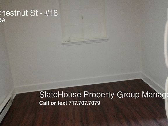 SCHEDULE A SHOWING ONLINE AT: showmojo.com/lh/1063e5900d Must see 1 bedroom apartment. Large windows with lots of natural light. This apartment features: New Laminate flooring Freshly painted Good size eat in Kitchen Good size bedroom Separate living room Coin operated laundry Elevator in Building Ample closet space Tenant pays Electricity Water, Sewer, Trash Included in rent Refrigerator and Range included with apartment Sorry but this is not currently Section 8 Approved 1st month rent is due at signing. 1 Month Security Deposit at move in date. Poorly qualified applicants may be required to pay 1st and last month rent at move in date. Free online rent payments. To Schedule a showing please either: schedule online at http www.slatehousegroup.com/homes-for-rent or call 717-707-7079 - 24/7 or click the clickable button on this page for more information To fill out an application visit www.SlateHouseGroup.com and click homes for rent tab. Not the rental for you? Check out all of our other rentals at www.SlateHouseGroup.com Cats Not Allowed Dogs Not Allowed