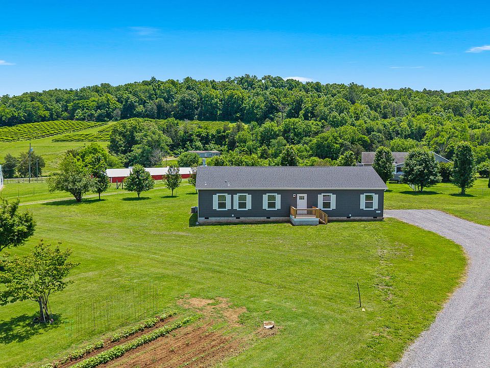 4.99 !!! Would 4.99 interest Rate ''Interest'' you??? This seller is willing to make that happen. Welcome to this gorgeous true modular home, expertly set by crane and perfectly positioned to capture breathtaking views of a lush grapevine orchard and rolling hillside from the large back covered porch. Step inside through a welcoming foyer into an open floor plan that flows effortlessly through the heart of the home. The chef's dream kitchen features an abundance of cabinetry, a stunning center island, a large pantry, and sleek finishes. Crown molding, built-in shelves, luxury vinyl flooring, and beamed ceilings with recessed lighting add upscale charm throughout. Cozy up in the spacious living room with a stone fireplace that can be enjoyed as gas or wood burning. The oversized master bedroom is a true retreat, boasting sliding barn doors, a spa-like en suite bath with an amazing walk-in tiled shower, a separate soaking tub, double vanities, and a walk-in closet. The guest bath also features double vanities, and the large laundry room includes built-in cabinets and a convenient folding table. Enjoy outdoor living from the front, side, or back porch, all set on a .83-acre lot with room for a garden or future garage. Additional highlights include underground utilities and a 5-year builder's warranty. This home seamlessly combines luxury, function, and scenic tranquility. Room to park an RV..Call today.