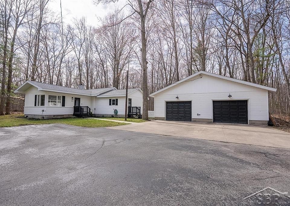 Enter Paradise on E Pine River! Have you been waiting for the perfect home to enjoy the quiet of the country but not far from Midland? Setting on nearly three acres and freshly updated, this 1500 square foot ranch home is ready for new owners. As you enter the driveway you will view the beautiful treed back yard that provides shade in the hot summer months. Entering the front door you will be greeted by an open concept that emphasizes plenty of natural light. The living room features luxury vinyl plank so not to worry about gatherings with spills. The kitchen and dining room offer beautiful hardwood floors that lead to a huge patio door. With an island and a wrap around bar, there is plenty of room to cook and entertain. Three bedrooms with updated carpeting, some newer windows, are ready for you to make this home your own. The large bathroom features tiled floors and an adorable vanity. The home also offers a large laundry and entry room for extra storage. Not to be out done by the inside, walk out onto the back deck for an evening tea and listen to the quiet that surrounds you. The garage is oversized, 32x30, and adequately offers two parking spots plus a 14x12 finished space. The area is walled off for a great craft room or gaming room, you get to choose! Don't wait as this won't last long in the Bullock Creek school district. Call for your private showing today!