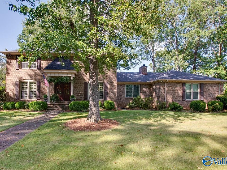 French Country Class w/ a Show-Stopper Southern Living Porch, located one block from Aldridge Creek Greenway in one of SE H'ville's most Treasured N'hoods. This 4/5 BR, 3 Bath Home has character, practical floorplan & thoughtful Details t'out...Hardwoods t'out Main Level, Multiple Living Spaces & as night falls, SUCH a magical place to relax or treat friends to your cozy porch and patio. Formals, LARGE Great Rm w/ Gas FP, Remodeled Kitchen/Breakfast Rm & Remote Work Office (cd be 5th BR). Plantation Shutters & Smooth Ceilings t'out. Roof and HVAC 2021, Windows & Doors replaced...Adorable She Shed/Playhouse! 1/2 Mile from Valley Bend Shopping/Restaurants