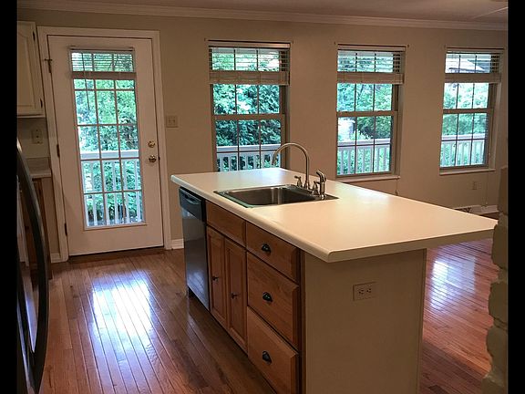 Large level entry Colonial in nice neighborhood with wonderful open floor plan. - covered wrap-around side porch to back deck - mature landscaping - fenced in yard. First floor: - living room with log burning fireplace - dining room - kitchen with 8 foot island opens to first large family room - pantry - half bath/powder room. Second floor: - four bedrooms - full bathroom. Basement: - second family room opens to driveway and fenced in yard - den, playroom or office - separate laundry room. Appliances include refridgerator, gas range, microwave, dishwasher, washer/dryer. Other: Ceiling fans, crown molding, newly painted, window blinds, awnings, hardwood floors, carpet in basement. Tenant responsible for all utilities. Dogs allowed at owners discretion. Credit and background checks required.