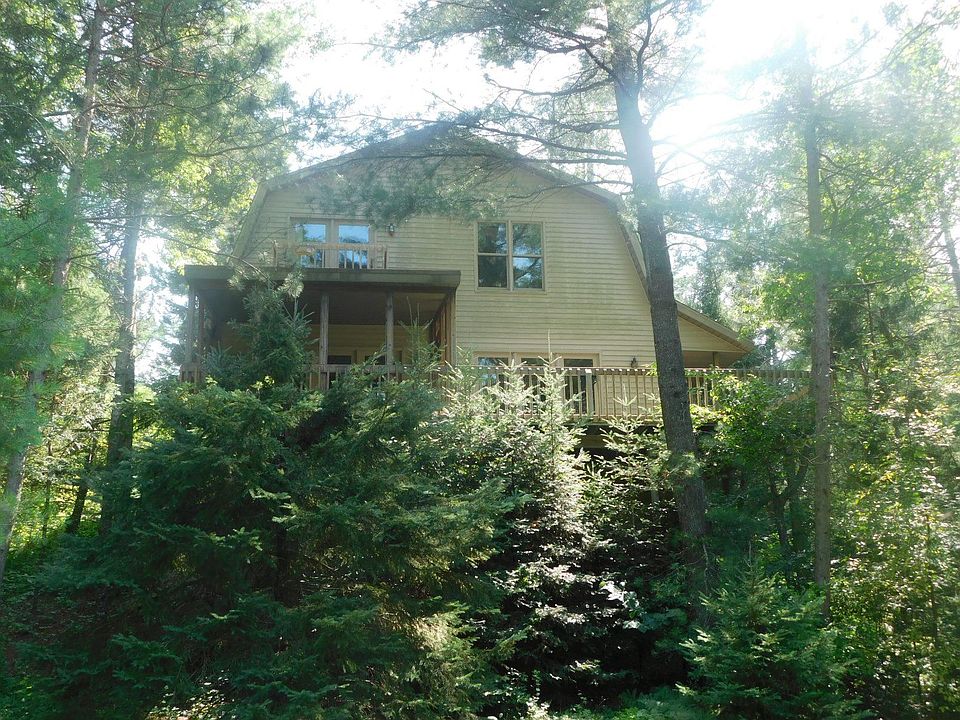 AUSABLE RIVERFRONT- 116 feet of frontage on this extremely well built and well kept home. Sitting on over 1.2 acres on the AuSable River, this home offers 3 large bedrooms (Master Suite with large master closet), and plenty of river views from inside or outside on the wrap around covered deck. Oak trim, oak doors, hardwood floors and ceramic show the true craftsmanship thru out the home. Also includes central air, back up heat, whole house generator, and wood stove. 4 car detached garage with an additional loft area. Must see to appreciate. D-419
