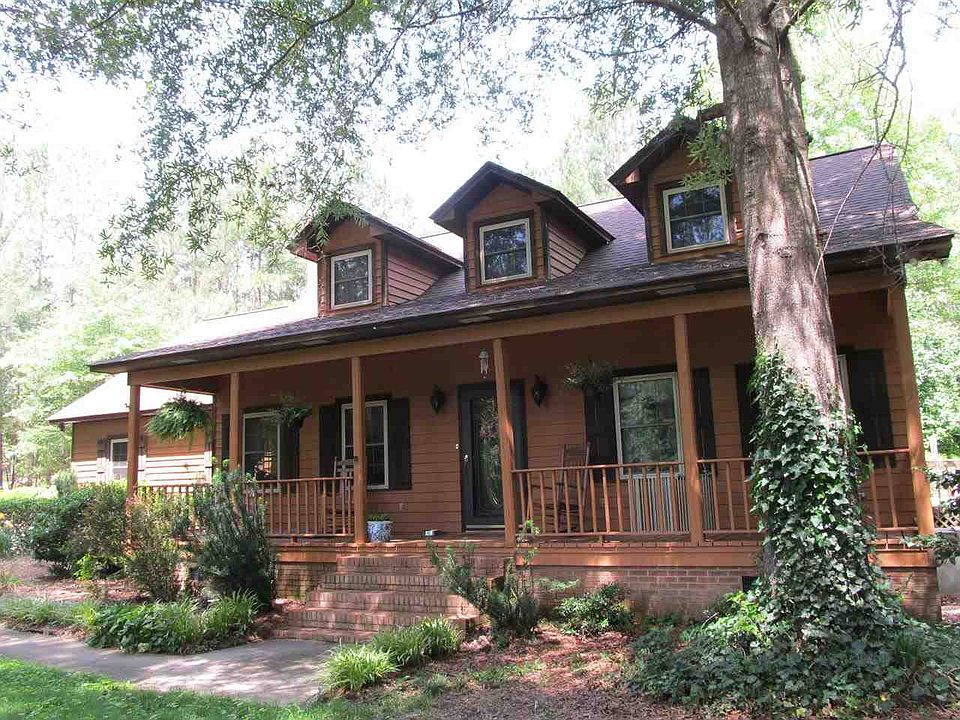 House, Stables, outdoor storage, pond, back patio with fountain. All on almost 6 acres of land. Cedar siding home with master bedroom and bath down and4 bedrooms and 2 baths upstairs. Three horse stalls and one tack room. Large den with built in bookcases and fireplace. Large front porch looking towardacreage and pond. Great indoor and outdoor living areas.