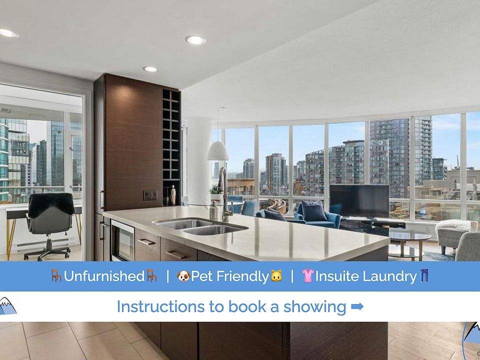 Please text us as per the information in the photos or contact us using the buttons available. If the home is ready for showings we will reach out to schedule a private showing with you. This home is available now! This unfurnished and modern north-east facing home offers 2 bedrooms + den and 2.5 bathrooms across 1,171 sqft of living space. Built in 2010, the unit features hardwood floors, in-unit laundry, and a well-equipped kitchen with a stove, fridge, microwave, and dishwasher. Heating is provided by electric baseboards, and one secure underground parking stall is included. Residents enjoy access to excellent building amenities including a gym, lounge, and garden areas. Located in the heart of Downtown Vancouver, this home is within walking distance of Yaletown restaurants, Robson Street shopping, BC Place, Rogers Arena, and multiple SkyTrain stations, making it ideal for both professionals and families. - Neighbourhood: Downtown Vancouver - Type of Unit: Condo - Approximate Square Footage: 1171 - View Direction: North-East - Number of Bedrooms: 2 + Den - Number of Bathrooms: 2.5 - Heating / Cooling: Electric Baseboard Heat / None - Parking: 1 secure underground spot - Storage Locker: Not available - Pet Policy: 1 pet permitted (35lb max, full grown) - Smoking: No smoking, growing, or processing of any cigarettes, marijuana, or other combustibles on the property - Services Included with Rent: Building services as provided by Strata, Sewer, Water, Hot Water, and Garbage Removal - Tenant Responsible for: Gas, Heat, Electricity, Internet, Cable Deposit(s): Half month's rent, as per legislation Move-in/ Move-out Fee: $300 (charged by strata) Minimum Lease Term: 1 year, then month-to-month Tenant Insurance: Required at possession