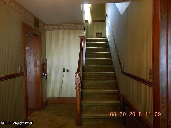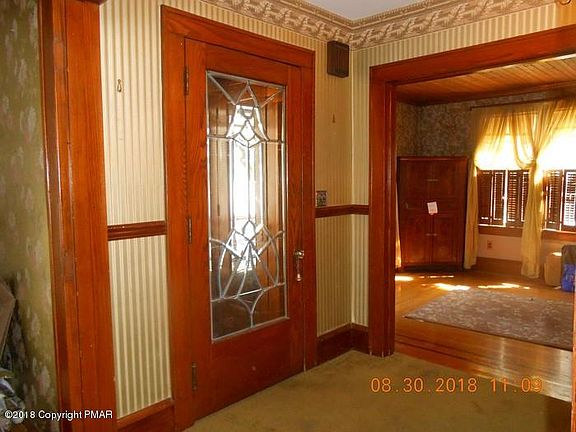 Enter through the leaded glass doors in the front hall into a world of Victorian charm. Formal living room with brick fireplace and dining room flank the entrance hall with elegant original wood stairway. Enter an updated ceramic tile and wood kitchen with dining area, half bath and enclosed back porch. The first floor is then completed by an office with half bath and waiting room entered through separate 9th Street entrance. Five bedrooms and a ceramic tile full bath complete the second and third floors. There are inlaid original hardwood floors in many rooms. This highly desirable corner lot comes with a detached two car garage. 2 NEW 275 gallon oil tanks installed 12/2018. Needs updating and some restoration to bring it back to it's original Victorian elegance.