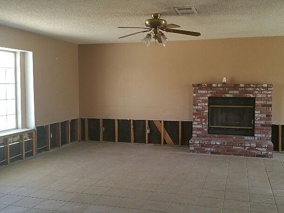 3 bedrooms/1.75 bath home located in cul-de-sac on large, 0.22 acre lot. Open floor plan. Living room has brick fireplace. Indoor laundry room. 2 car attached garage. Large covered back patio. Evaporative cooler on roof. Large backyard. RV parking. Block backyard wall on the west side. This home had flood damage and needs repairs.