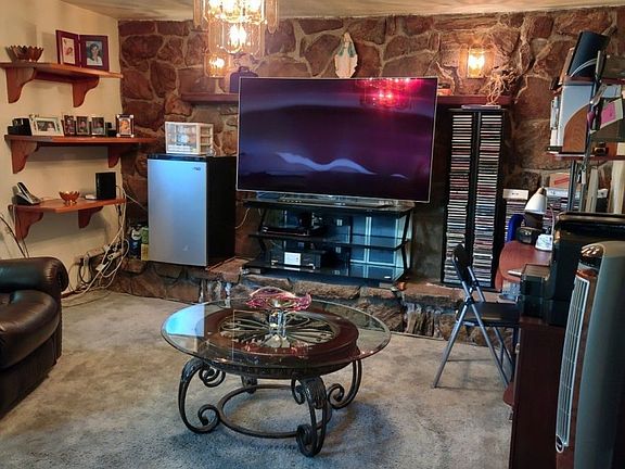 - Flooring- Carpet, Flooring- Tile, Fireplace, Chandelier(s), Curtains/Drapes, Blinds