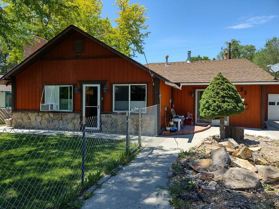 One level living that has a huge kitchen with updated appliances. Formal living with a good old fashioned wood burning fireplace to enjoy plus a formal dining room. 3 bedrooms, 2 full bath plus a den or family room that is accented with a custom wood burning stove. The yard is fenced and has a sprinkler system. The window cooling window unit stays. The basement has the furnace, water heater, sump pump and storage. The carpet will be stretched prior to close of escrow.