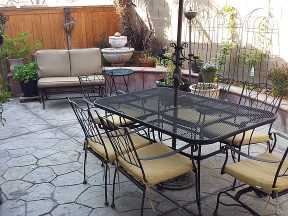 2BR plus office/den/3rd BR space. 2 story w/ Wood,tile,carpeted floors, custom built in entertainment center and ,desk. Gas fireplace w/blower, Rennai tankless water heater. Tiled kitchen with center island and breakfast bar. Two tone paint with ceiling fans throughout, living room wired for speakers, retractable front screen door. Tile roof, stamped concrete patio w/garden planter wall. Low maintenance Synlawn front with drip irrigation front and back. 2 car garage.