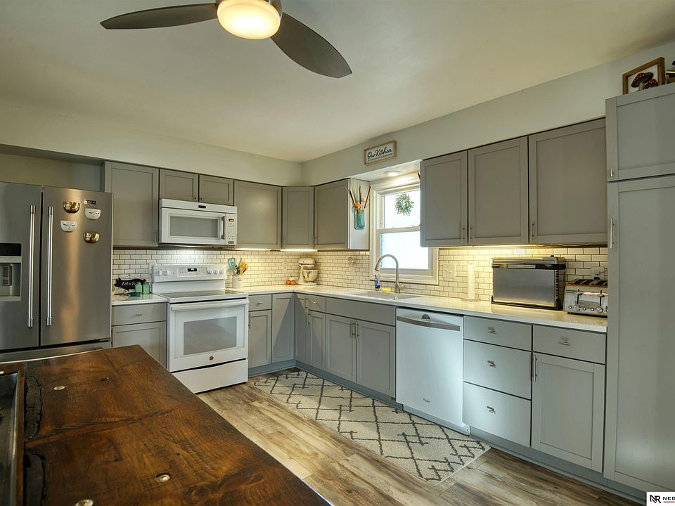 This is the Home you've been waiting for! Completely Renovated Dream Kitchen with New cabinets for plenty of storage, quartz countertops, subway tile backsplash, flooring & Appliances that STAY! Big slider opens up to new deck and large yard. Both main level bathrooms have beautiful tile work and new vanities. The main level has new carpet in 2023! Generous size bedrooms with custom built-ins in closets. Lower level has good size rec room and storage. Nice size corner lot, fully fenced yard and expanded driveway for plenty of off street parking. Fantastic location (when 108th street is repaired!) Close to Dodge Expressway, Shopping, Dining, Park & Shopping!