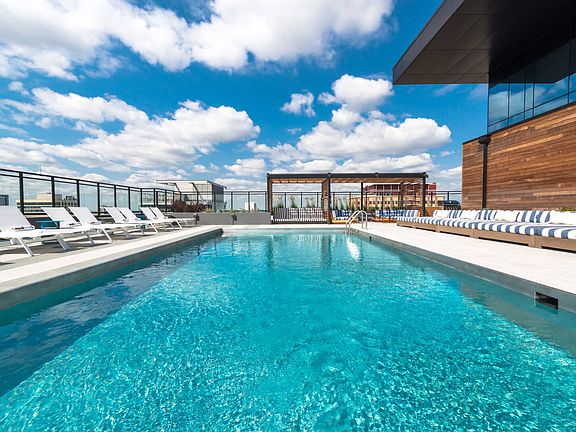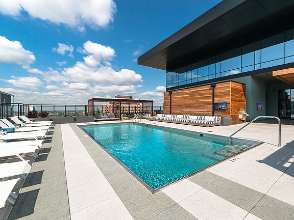 - Exterior features: , 9' Ceilings, AT&T or Comcast Internet- up to 2 GB, Bicycle storage, Clean, natural and modern interior design, Custom roller shades, Kitchen and bath soft close drawers, Kitchen faucet with pull out faucet, Kitchen track lighting, Monda custom cabinets, Package Receiving, Parking rates starting at $300 - $500, Pet-friendly living with dog run and pet spa, Private balconies in select apartments, Secure key-less apartment entry system, Tide Cleaners, Dry Cleaning on Demand, USB outlets, Under cabinet lighting, Under-mount stainless steel sinks with disposals, WiFi in all Common Areas