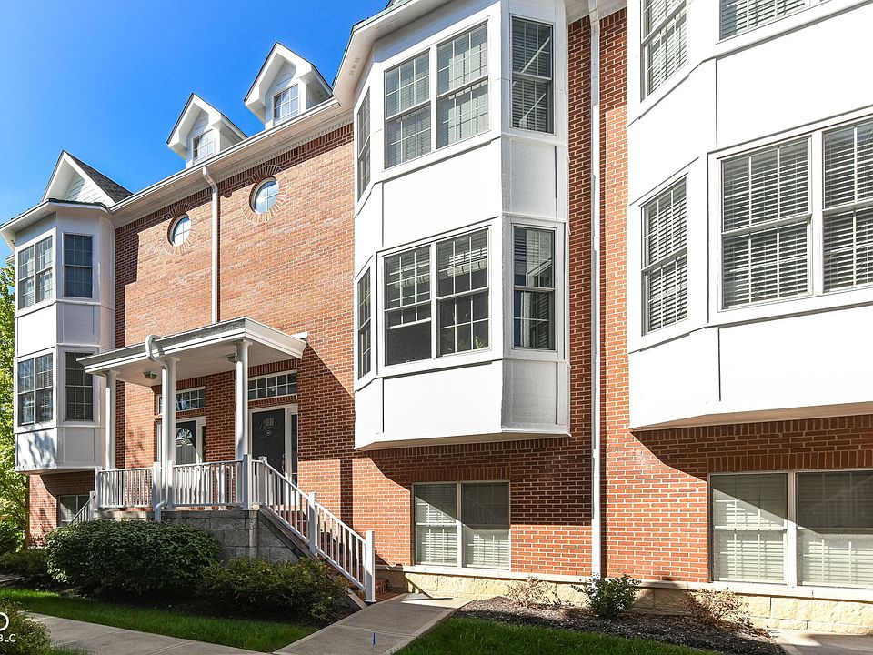 Enjoy low-maintenance living in the heart of Carmel! Beautiful large upscale townhouse with open floor plan, bay windows, enhanced moulding, hardwood floors and almost 2700 sf. Light filled Kitchen has huge center island, upgraded white cabinets with light granite counter tops and a butler pantry/coffee bar! Walk out onto the deck for grilling and outdoor living! Two spacious primary suites up (both with trey ceilings) and an additional guest suite (or office, exercise, den) on the ground/garage level, all with private ensuite full bathrooms and enormous walk in closets. One of the primary suites has custom closet system and incredible large tiled walk in shower. 2 car garage with bump out for workshop or project space and large closet for additional storage. Water softener. NEW water heater (2023). Carmel schools, prime location and short walk to the popular Arts & Design District, restaurants and Monon Trail. Enjoy Carmel living... consistently named a top place to live in the U.S.!