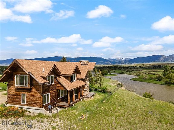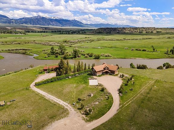 Perched above the Madison River in Ennis, MT, this home boasts grandeur and epic views of the Tobacco Root Mountains. In addition to offering a variety of recreational options, this range of mountains is deeply rooted in its history as a mining community, and is close to Virginia City, another historic mining town. Moreover, Ennis is known for its world-class fly fishing as well as its welcoming and vibrant atmosphere. The home is situated on a dead-end street adjacent to a large ranch, making the surrounding area feel expansive and private, yet it is only a short walk from the bustling main street. There are 6 bedrooms with 2 master bedrooms, a timber framed interior, and a stone fireplace that extends from floor to ceiling. The upper level has a spacious master bedroom, a loft space that overlooks the expansive living room and mountain and river views out the large windows. There are 2 additional bedrooms and a full bathroom; the perfect set-up for guests. The basement amenities include a theatre room/family space, a wine cellar, a steam room, sauna, and two additional bedrooms. With this home, there are opportunities for improvement and personalization, including the opportunity to build a garage and guest space above it as there is an existing concrete pad. Bring your ideas and vision!