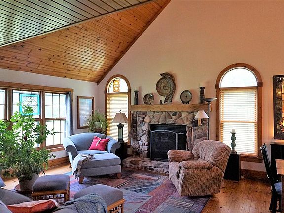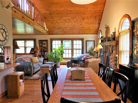 FIRST TIME ON THE MARKET Custom Built Prairie House. This bright home has 3 bedrooms, 3.5 baths, sun room, loft, and a large Guest/Rec room on the lower level. Master BR has private bath and WIC. Solid cedar siding, southern yellow pine and tile floors, hand crafted wood trim, field stone fireplace, wood ceilings, Swedish roof windows, new furnace, water heater, and roof. Over 4 acres of woods, prairie grass, and wildlife within the village. Village amenities with interurban bike/walking trail bordering back of property. Very private setting with great views of nature from every window.