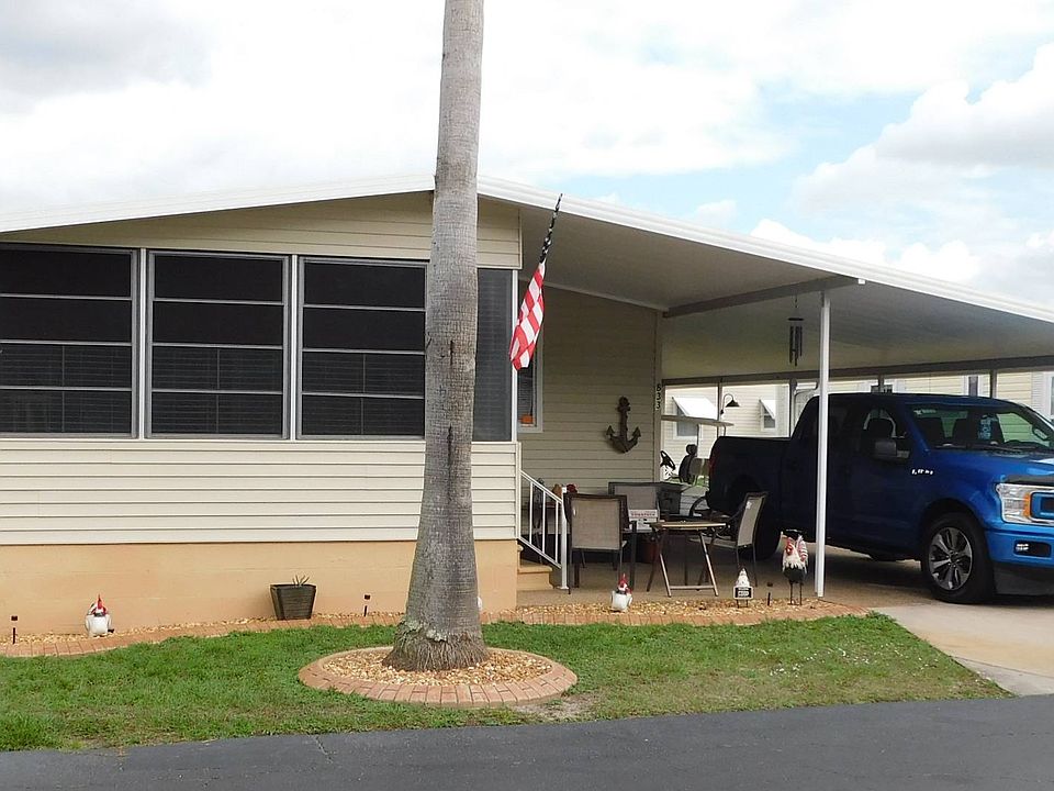 BACK ON THE MARKET BUT WON'T BE FOR LONG! This immaculately maintained home is located in the premiere 55+ community of Villa Del Sol. Luxuriously furnished, and turn-key ready, this fabulous home has an open concept floor plan with 2 bedrooms, 2 baths, formal living/dining, as well as an all-season Florida room, carport, attached shed, lifetime roof, new concrete landscape curbing, covered patio, golf cart, fresh paint, new laminate flooring, new blinds, beautiful new living room furniture, and accessories galore! What more could anyone want? The spacious open floor plan is perfect for entertaining! Welcome to the light and bright kitchen that boasts ample cabinetry, pantry, sprawling counter space, and bonus storage cabinet that makes the perfect mini bar. Most of your time at home will probably be spent in the gorgeous Florida room that runs the full width of the home and features lovely wicker furniture and new blinds. Ready to unwind? In the living room, put your feet up in one of the recliners and watch a little TV or grab a good book or piece of needlework and head to the new reclining sofa that's more than a little comfortable! How about at the end of the day retiring to the covered patio with your favorite beverage to enjoy the tropical breezes? It just doesn't get any better.... Get ready! Your guests may never want to leave when they experience the serene, beautifully furnished guest bedroom with it's spacious closet and conveniently-located guest bath with new flooring and tub/shower combo. You, too, will be a bit spoiled in the lovely and spacious master bedroom with large closet and en-suite bathroom with walk-in shower. The carport provides plenty of room for both your vehicle, bicycles, and even the golf cart that is also included in the sale. The attached oversized shed doubles as a laundry room/storage area and is perfect for seasonal decorations, golf clubs, etc. You decide. Do as little or as much as you would like, for only approximately $430 per month lot rent. Villa Del Sol is an active 55+ manufactured home community that offers resort-style amenities. Don't delay! Schedule your tour today.... *All listing information is deemed reliable but not guaranteed and should be independently verified through personal inspection by appropriate professionals. Listing company cannot guarantee or warrant the accuracy of this information or condition of the property. The buyer assumes full responsibility for obtaining all current rates of lot rent, fees, and pass-on costs. Additionally, the buyer is responsible for obtaining all rules, regulations, pet policies, etc., associated with the community, park, or home from the park manager.