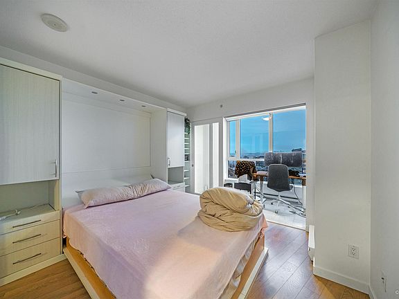 This 1-bedroom plus den home offers stunning city and water views, an open concept floorplan, upgraded flooring, a chef's kitchen with SS appliances, granite counters, and ample storage. The spacious master bedroom features a custom wall bed, WIC, and a spa-like ensuite. Enjoy sunny outdoor space and benefit from amenities like concierge, gym, and party room in this well-maintained concrete building. Conveniently located in downtown, steps away from Robson Street, Yaletown's shops, restaurants, and transit. Pets and rentals are allowed. 1 parking is included.