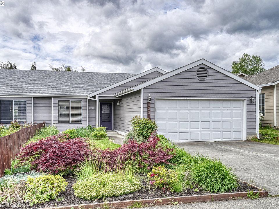 One level living, 1988 townhome, open floorplan, double garage. Quiet street. 2 bed/2 bath. Large primary suite with walk-in closet, tiled shower. Small front yard and private, fenced rear yard. Forced air gas furnace, air conditioning, wood fireplace, granite counter in kitchen. All appliances including washer/dryer. Ceiling storage racks in garage. Easy one-level living.