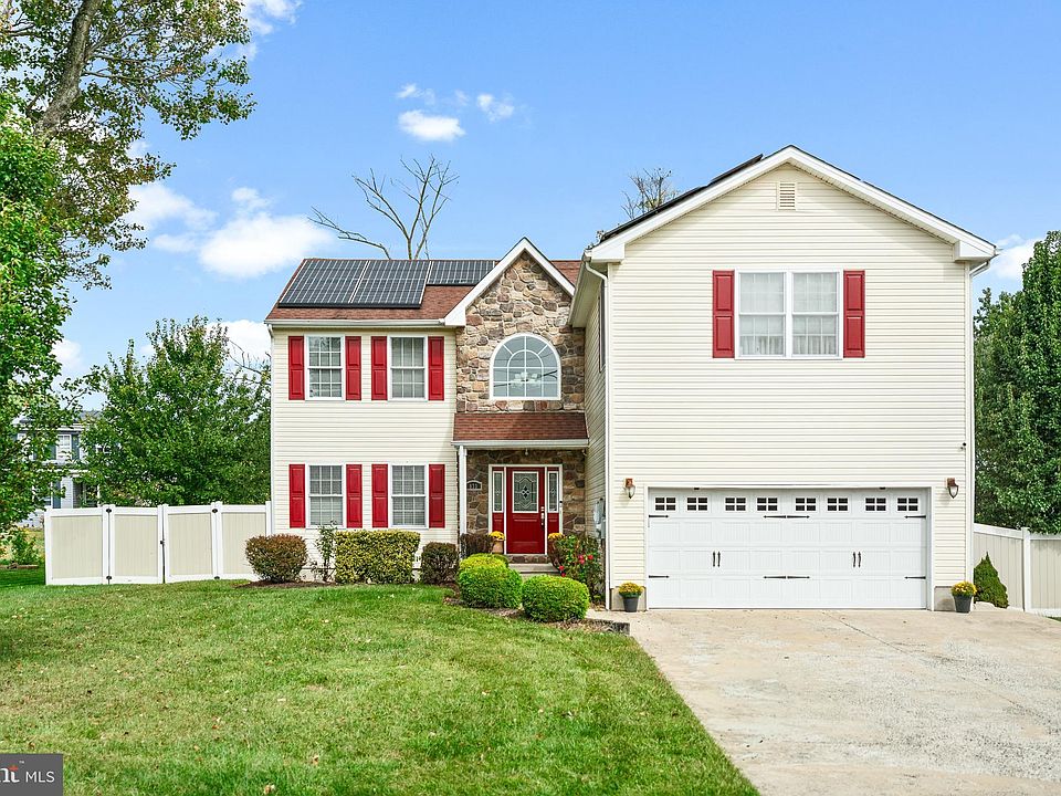 Experience luxury living in this newer colonial-style home in Bensalem (built in 2014), perfectly situated on a private dead-end street. Dive into your very own inground pool complete with a mesmerizing rock waterfall, and enjoy nearly zero electric bills thanks to an advanced solar power system with battery backup. Gleaming hardwood floors carry you through a spacious first floor featuring elegant formal living and dining rooms, a cozy family room, and a modern eat-in kitchen outfitted with stainless steel appliances. Seller will install a gas cooking range if buyer prefers to cook with gas. Upstairs, retreat to the expansive owner's suite with a charming fireplace, two walk-in closets, and a lavish en-suite bath, plus three additional bedrooms—including one with its own private bath. The convenience continues with a laundry room, hall bath, and a fully finished basement boasting a kitchenette, wet bar, bathroom, bonus room/office, and direct access to the inviting rear yard. Don’t miss your chance to add your personal touches and make this exceptional property home! Some pictures of rooms with furniture have been virtually staged.
