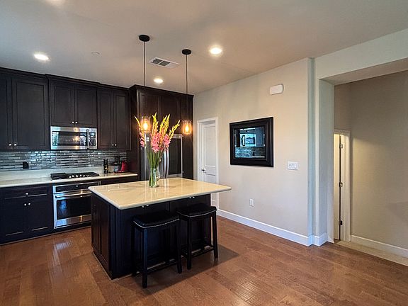 Executive Townhouse in Livermore with resort-style amenities. Open floor plan that features 3-bedroom, 3.5-baths and a 2-car garage. Includes a chefs kitchen featuring quartz counters, a large island with breakfast bar, stainless appliances, tile back splash with a large walk-in pantry. The entry level has a private bedroom en-suite with full bath, ideal for guests or extended family. Includes 6 State-of-the-art appliances, engineered hardwood and rainfall showerheads throughout. Enjoy the amazing Amenities including full fitness center, lap pool, cabanas, two hot tubs, clubhouse, and more. Prime location with quick access to I-580 and Hwy 84, close to Las Positas College, Cayetano Park, dog park, outlets, and just minutes to downtown Livermore's shops, restaurants, and wineries. Month to Month Lease to Long Term