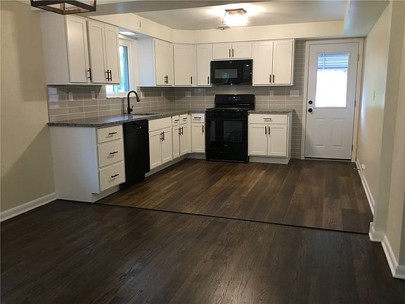 COMPLETELY REMODELED "L" SHAPED BRICK RANCH WITH 3 BEDROOMS 2 FULL BATHS.IMPROVEMENTS INCLUDE NEWER ROOF , NEW WINDOWS , NEW WHITE SHAKER STYLE KITCHEN CABINETS w/GRANITE COUNTERTOPS , NEW GAS FORCED AIR 95% FURNACE w/CENTRAL AIR , REFINISHED HARDWOOD FLOORS THROUGHOUT , NEW 100 AMP ELECTRIC PANEL , NEW OUTLETS/SWITCHES / COVERS , NEW OIL RUBBED BRONZE LIGHT FIXTURES ,DOOR HINGES AND DOOR KNOBS , FRESHLY PAINTED TRIM AND DOORS. NEW INSULATED STEEL ENTRY DOORS IN LIVING ROOM/KITCHEN/ BASEMENT EXIT DOORS.NEW GARAGE DOOR WITH SMART PHONE CAPABLE OPENER , NEW RETAINING WALLS AT GARAGE , NEW LANDSCAPING , REAR YARD WITH 12X25 CEMENT PATIO .......