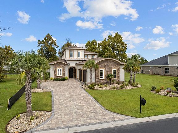 5 bed 4 bth luxury home in the gated community of Carolina Waterway Plantation, an Intracoastal Waterway community. Property located across the street from ICW. This beautiful home offers the 21' ceilings as you enter the through the main door the lovely curved staircase greets you as you enter the open concept floor plan. The kitchen has beautiful tiled backsplash with premium high-level quartz countertops, soft close cabinets, wine rack, stainless steel appliances, gas cooktop, eat-in island with a curved glass statement hood, built in double microwave/Convection oven. The main living area has two sliding glass doors that creates an indoor/outdoor living space when fully open. The Master bedroom boasts double tray ceilings, his and her closets. Tiled showers in all bathrooms, a laundry room off of the garage and 3 additional bedrooms with walk-in closets.The second level of this home has a second living/great room and an oversized bonus/bedroom and a full bathroom with their own sets of slider doors leading to the balcony overlooking the beautiful back yard. The home is equipped with sprinkler system, remote garage doors, money saving energy efficient tankless water heater, and gas powered fireplace option. The Back yard's irrigation is pool install ready. The community offers a gated children's playground, a community amenities center, and swimming pool, tennis courts, basketball, and plenty of rec. trails. Boat storage is available if needed. A 54inch pool code aluminum fence has been installed. Have your agent ask listing agent about seller closing cost assistance and home warranty.