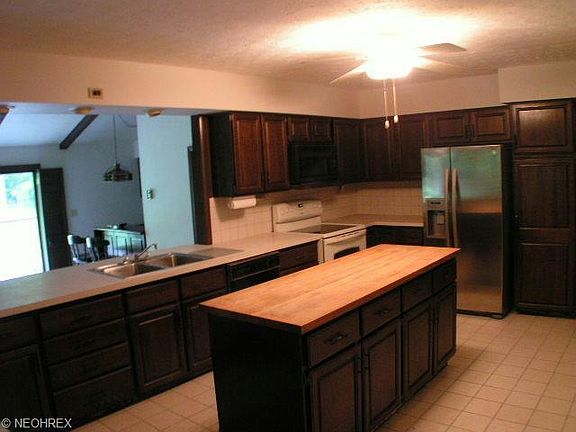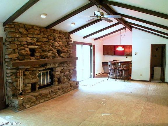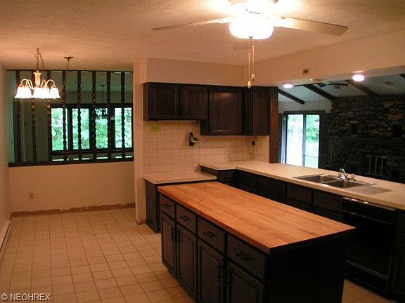 Home sets off the road on five wooded acres that offer scenic views and privacy. The front porch overlooks a pond and picnic pavilion. This 3 possibly 4 bedroom home with large rooms has 2664sf. of very open living space plus a finished basement. The tiled foyer opens to the eat-in kitchen with butcher block top island, planning desk, tile floor and oak cabinets. Kitchen has full view of the 35' by 15' family room with vaulted ceiling, wet bar and stone floor to ceiling fireplace. Dining room features a bay window. Master is 24' by 13', has two closets, a full bath and a patio door to balcony. Two patio doors off the family room open to the flagstone patio and raised deck. Basement has a rec-room, exercise room and an office. Oversized two car side load garage plus storage shed for the mower.