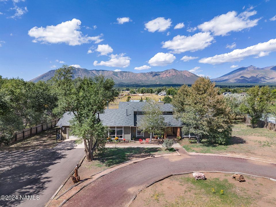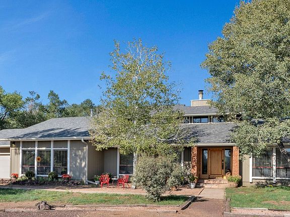 VOTED BEST HOME ON TOUR! This is the one you've all been waiting for! Country living on a paved road with all the conveniences of living in town with incredible panoramic views! This 2861 SF well maintained beauty has much to offer. Bright-open and spacious and perfect for entertaining, you will find 2 generous living areas. The living room features 20' tongue and groove vaulted ceiling with floor to ceiling stone fireplace. The large family room also features tongue and groove ceilings and a couple of large closets for storage. Kitchen features include hickory cabinets, solid surface counter tops, stylish custom backsplash, reverse osmosis and a huge pantry area. Dining area just off the kitchen offers a wood burning stove. . Formal dining area is perfect for hosting large family gatherings and entertaining while the informal dining area works well for every day. This home offers a total of 4 bdrms, and 3 bathrooms. You will find 3 bdrms and 2 full baths on the first level. The 2nd level hosts an oversized primary suite allowing additional privacy for its occupants along with a glass sliding door that provides access onto a private deck where you will enjoy some of the best mountain views Flagstaff has to offer. You will find yet another wood burning stove here - perfect for those cold winter nights. Recently installed gorgeous LVP SCP is found throughout most of the house, with newer carpet in the family room and bedrooms. Interior paint and baseboard completed within the last 2 years along with new chimneys and central air!!960 SF cinder block 4-stall barn with water access can be found in the backyard, along with an adorable shed that can be used for storage or as a child's playhouse. Home is located near fire station, Peaks View Park, hiking trails and just minutes to shopping, restaurants and entertainment.