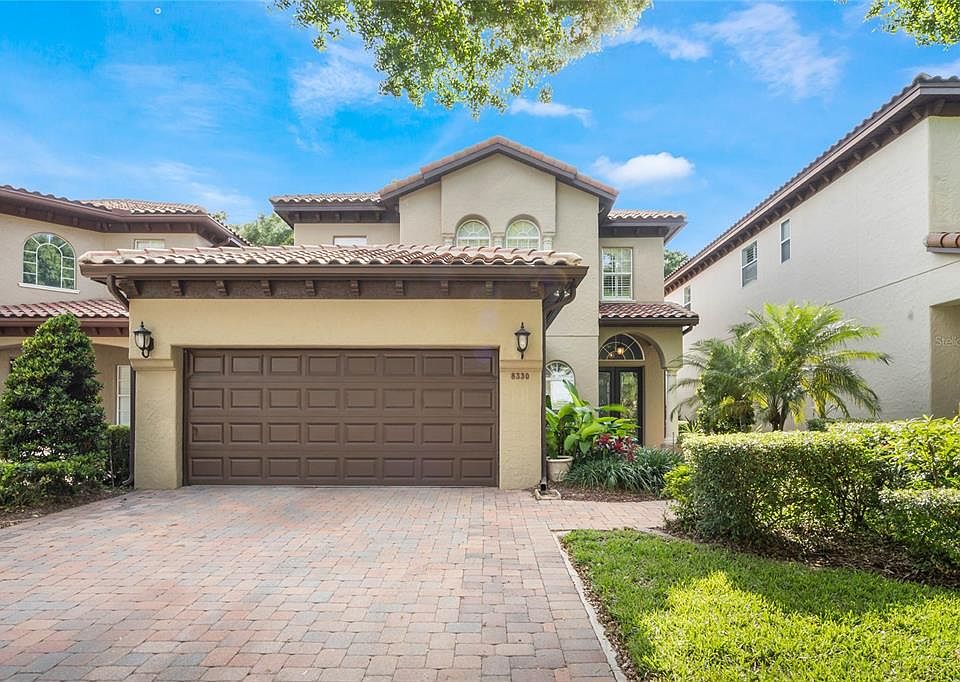 Welcome to this well designed and maintained Mediterranean inspired Two story Four bedroom home. Located in the 24 hr Guarded Gated Dr Phillips community of Vizcaya will sure WOW you! Lovely landscaped homesite, a first floor primary suite, stunning architectural details with high finishes are just a few of the outstanding features of this home. Expect to be impressed as you enter through the double glass front doors. Designer touches with plantation shutters, surround sound, crown molding and impressive hard surface flooring throughout provides ease of maintenance. Gourmet Kitchen is equipped with everything the family chef desires; all Kitchen Aid appliances with double oven, cooktop and vented hood. Solid wood 42” kitchen cabinets with crown molding, Granite countertops, decorative backsplash, custom pantry closet doors and island with storage cabinets. The formal dining room which features a double tray ceiling with backdrop lighting is open to family room with gas fireplace, provides the perfect entertaining space. Bring the outdoors in, as you open the triple sliding glass doors to enjoy the privacy on the expanded paver lanai with screen enclosure, a perfect retreat for relaxation! Laundry room with utility sink and powder bathroom are conveniently located off the kitchen. Spacious primary suite located on first level with stunning travertine flooring, access to Lanai and ensuite master bathroom provides open walk-in shower, separate vanities and Jacuzzi garden tub. The beautiful wood staircase with wrought iron accents, leads you to the second level offering 3 bedrooms and full bathroom with shower/tub combo. Upgrades and enhancements include: New interior paint, Contemporary lighting fixtures throughout, HVAC units in 2019, TESLA home charging system in garage, new master bath hardware, lighted master bath mirrors, Smart Home with iDevice thermostat and Solar Panels fully paid providing low electric bills we all desire! HOA includes your lawn maintenance in addition to shrub trimming, fertilization, weed and pest control. Stroll to famed “Restaurant Row” featuring unique food offerings to satisfy everyone's palate. Top schools, major roads and highways, fabulous shopping, Universal, Disney and Disney Springs all close by. This home is ideally located and perfectly designed for the family, second home and those seeking the Florida lifestyle within a luxury community. Put this home top of your list to see today!