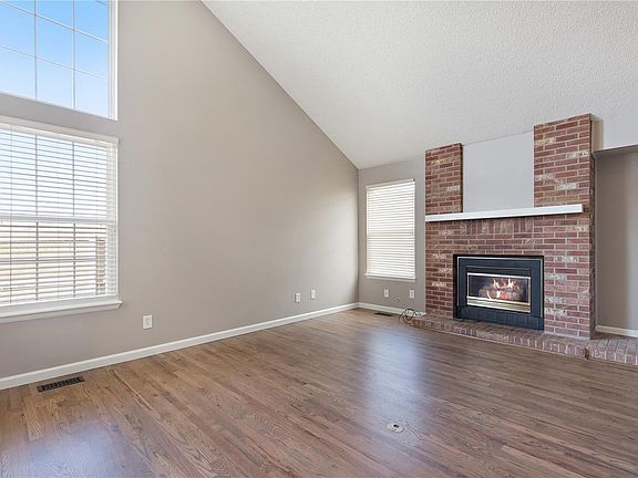 BEST LOCATION IN THE COMPLEX! End unit backing to open space, walking trails, and Nottingham Park offering the tranquil sound of running water echoing from the creek bed passing by! Completely updated with brand new gray-washed stained hardwood floors, charming red brick fireplace, soaring vaulted ceilings, beautiful kitchen open to the family room with stainless steel appliances, upstairs loft versatile for an office, play room, or covert to a 3rd bedroom, on site washer and dryer, AND a private enclosed/fenced back patio where you can relax and unwind! Magnificent, well cared for home in the heart of Arvada!