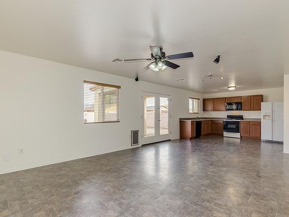 Mature landscape, 2 -car garage, & move-in ready home. Beautiful tiled floor, neutral palette, window blinds, ceiling fans, & French doors to patio. Spacious open floor plan, stylish kitchen counters, pantry, & plenty of wood cabinets. Plush carpet in all bedrooms, ample closets, interior laundry room, & 2 baths. Huge backyard boasts covered patio, Koi pond w/waterfall, pavered patio for dining, & room for a pool, garden, & toys!