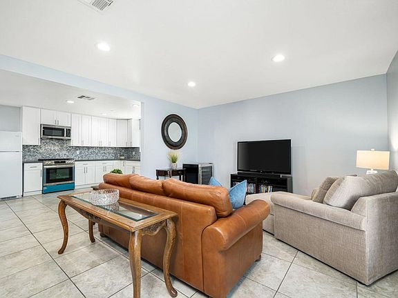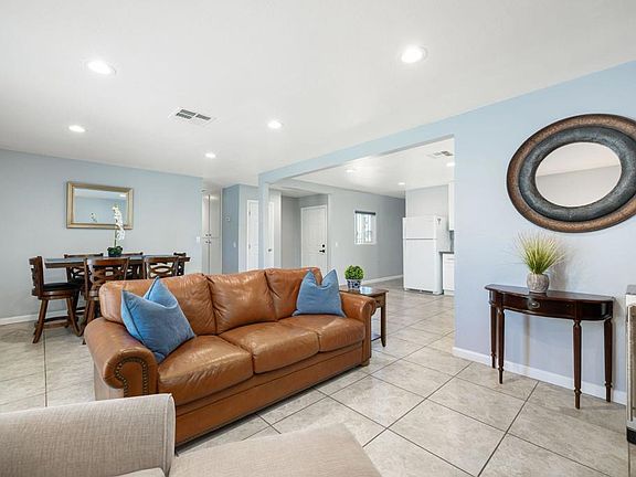 Gorgeous inside, a must see! Contemporary and Modern is what characterizes this upgraded 4 bedroom and 3 bathroom home. The family lifestyle is perfectly addressed in this home from the open living room to the private landscaped backyard. The kitchen showcases a herringbone marble tile backsplash, quartz countertops, and stainless-steel appliances. The interior remodel includes all new drywall and resurfaced ceilings, LED lights, and painted walls. There are 2 primary bedrooms and 2 family bedrooms. One primary bedroom has a private bathroom. The second primary bedroom is in the front of the home and has its own entrance from the outside. This second primary bedroom is spacious and has a split AC unit, new French doors, and tile floors. All bedrooms have new ceiling fans, window coverings, and luxury vinyl floors. All bathrooms have new Kohler fixtures, luxury crystal light fixtures, and quartz counters. The exterior remodel includes re-stucco and painted exterior walls, upgraded electrical panel, 4-ton AC unit, and a new roof. The yard has a new tiled back patio, sprinkler/drip system, as well as recently landscaped grass and plants. The front yard has newly seeded grass, Ficus and Rose trees with outdoor lighting. There is a private detached 2 car garage accessed through the security gate into the driveway. You've found the perfect home for a large family and pets. Hablo Espanol.