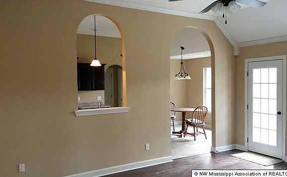 THREE BEDROOM TWO BATH SPLIT FLOOR PLAN. ENTRY & SEPARATE DINING ROOM HAVE HARDWOOD FLOORING. FIREPLACE WITH GAS LOGS & CEILING FAN IN GREAT ROOM. KITCHEN HAS SMOOTH TOP SELF CLEANING RANGE, MICROWAVE, DISHWASHER & GARBAGE DISPOSAL. TILE FLOORS IN ALL WET AREAS. SEPARATE LAUNDRY ROOM. MASTER BATH FEATURES DOUBLE SINKS, MARBLE WHIRLPOOL, SEPARATE SHOWER, LINEN CLOSET & WALK-IN CLOSET. FUTURE 12.6 X 16.11 EXPANDABLE AREA. COMPLETELY SODDED YARD. ONE YEAR BUILDERS WARRANTY. EXTERIOR PHOTO IS OF SAME HOME PREVIOUSLY BUILT IN RUTLAND POINTE.