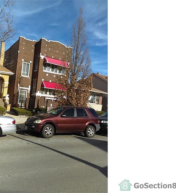 A 2 flat red brick with red awning in the front windows and black iron rod fence and backyard fenced in as well enclosed back porch beautiful residential street. The second-floor apartment has newly decorated 3 bedrooms newly carpeted bedroom new counter kitchen sink with hardwood floors in dining room and living room with bookend fireplace. For more properties like this visit GoSection8.com.