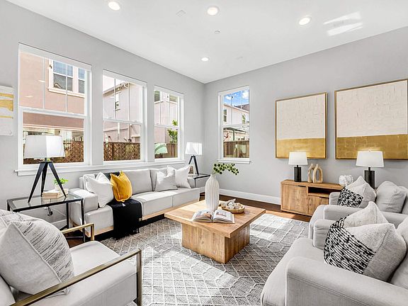 This 2 story SFH with 10 feet high ceiling downstairs, features 2293 SqFt of 4 bedroom and 2.5 bathroom. Premium Engineered Hardwood throughout downstairs and on glass railing stairs. Upgraded white cabinets up to the ceiling. island, stainless appliance package and built -in pantry in kitchen. Premium quartz countertop and soft close drawers and cabinets in kitchen and bathrooms. Recessed LED lights in living, dining and bedrooms. Custom closet cabinets were installed recently in the master closet. Most popular brand Graber cordless shades on all windows. Custom painted walls throughout the home. USB charging outlets in kitchen and master bedroom. Ceiling fan wiring in the living, master and one other bedroom. 7 track audio wiring in the living room. Fully paid Tesla 4.2KW solar panels. Garage wall is finished and painted. 50A 240V outlet in garage for EV charging. Professionally landscaped backyard with automatic drip system. Natural gas outlet in the backyard for barbecue or fire pit. The community is close to Meta and Tesla, among other major employers. The residents enjoy a host of amenities like a park, a kid's playground, BBQ and picnic area. Nearby National Wildlife Refuge offers open space with trails and nature to explore. Easy access to Dumbarton bridge and I-880.
