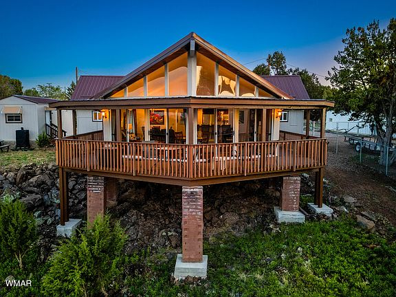Rare LAKE HOME IN THE MOUNTAINS! Wall of windows that overlook the water where you can boat/ski/fish and just have FUN. Enjoy entertaining on your deck at twilight with your family and friends. Watch the wildlife like the resident owl, deer, elk, bunnies and more. Home is completely furnished so just grab your bag and relax in one of the 4 cozy bedrooms. Enjoy breakfast at the built in bar or on the wrap-around deck. Handscraped WOOD FLOORS throughout. Sunrise on one side and Sun Set on the other. Store your toys in the garage and even your boat for the rest of the year at the prepaid boat slip. Brand NEW METAL ROOF and NEW SEPTIC, Foam Insulation, Pex Piping and updated Electrical. This rare opportunity won't last long so call for your private viewing NOW!