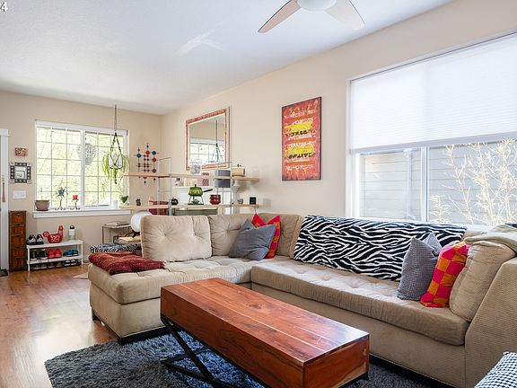 Find your Zen in St. Johns with this Earth Advantage Certified home! The backyard is a tranquil Zen garden you can enjoy year-round with a water feature, lots of seating and a propane heater. Large kitchen with island and plenty of storage. Under stair storage next to kitchen used as a pantry. Primary suite includes vaulted ceilings in the bedroom, double sinks in the bathroom and a walk-in closet. Washer & dryer on second floor where all the bedrooms are. All appliances included. Other home features include a covered front porch, gas fireplace in the living room, HVAC furnace with heat and central air, keyless entry and a Nest smart thermostat. [Home Energy Score = 9. HES Report at https://rpt.greenbuildingregistry.com/hes/OR10120752]
