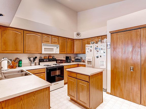 A BEAUTIFUL RANCH STYLE TOWNHOME WITH WALKOUT BASEMENT! Private fenced yard. Great area for garden or pet. Includes Kitchen stove, microwave oven, refrigerator, washer and dryer! Air-conditioned! Fantastic kitchen with eat in kitchen and center island! Skylights! 2 car garage! Wheel chair ramp with railing can stay or go.