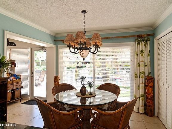 Custom built and well maintained CBS Key West style home. Privacy prevails in the lush tropical backyard that transcends you into paradise. Beautifully landscaped and fenced in pool area with covered loggia and tiki bar. Open patio area perfect for enjoying the Florida lifestyle. Well for irrigation and extra parking space on west side of home for boat or RV. INTERIOR features abound with details throughout. White kitchen cabinets with granite countertops and GE appliances. Bathrooms updated with the finest cabinetry and countertops. Elegantly appointed formal living and dining room.Separate office and art studio with built ins. IMPACT GLASS and elevated lot. THIS IS THE HOME YOU HAVE BEEN WAITING FOR.... close to beaches, shopping and great schools.