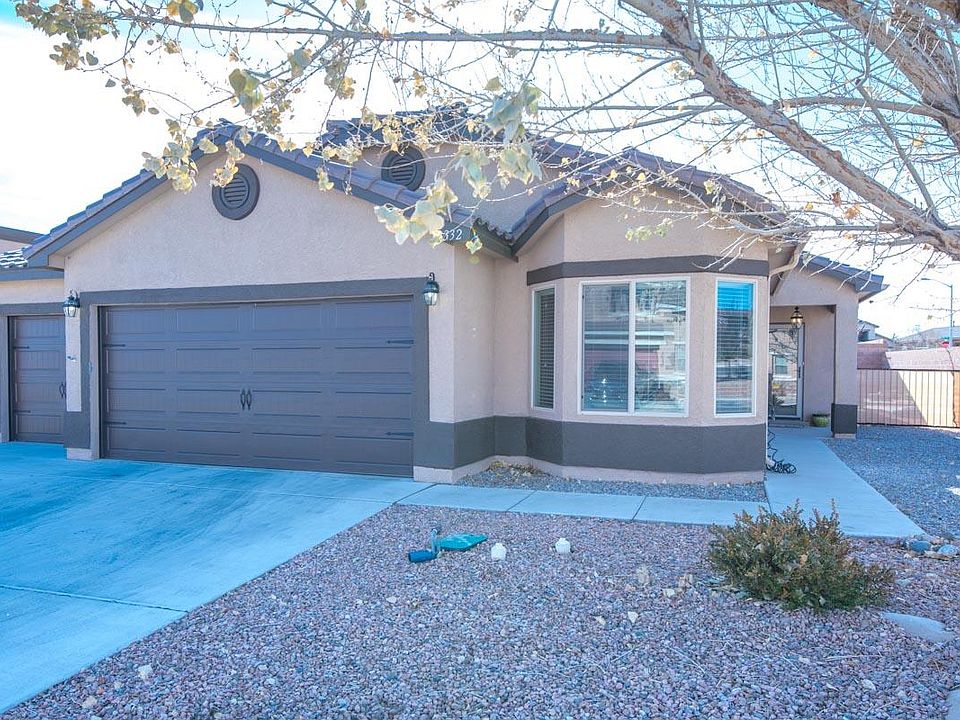Look no further!! Like new ONE STORY with a THREE CAR GARAGE.Extra large corner lot*Beautiful HARD surface flooring throughout with carpet in bedrooms. OPEN floor plan with large living/dining/kitchen. All appliances included. Glass back splash. Potential 4th bedroom could be office/media room or work out room. Endless possibilities. Backyard features outdoor patios with fire pit and storage shed. Tankless water heater*Coveted school district with parks/play ground and community POOL and community center. Walking trails surround the area.