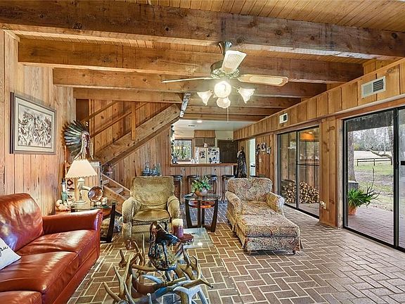 Cozy Farmhouse located on 34.11 high and rolling acres in Folsom. Cypress and Heart of Pine beams, floors and paneling throughout the interior with 2 wood burning fireplaces. Beautiful views from each room of the gorgeous rolling hills, 3 ponds, and scattered live oaks. 10 stall barn including (4) foaling and (6) regular stalls, feed room, tack rooms and equipment shed with 4 tractor carport. Additional structures include a workshop. Superb private location!