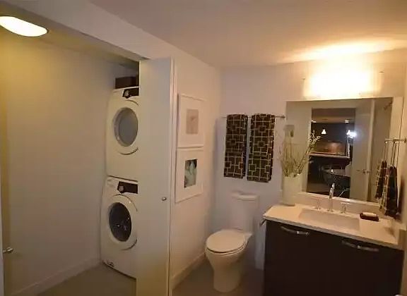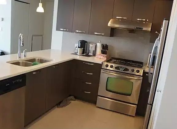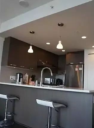 his 2BD+den unit features: central air-conditioning, low emission window,solid engineered quartz countertops,under-mount double bowl sink and single gooseneck faucet.Modern wood veneer cabinet with brushed nickle pulls. Fabulous city view. Central location close to Richmond Center and Canada Line Station
