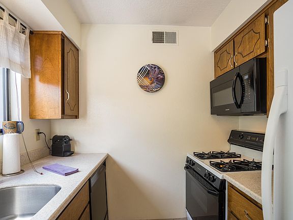 Lovingly maintained and updated NE Heights Condo, close to shopping, dining, entertainment and nearby park. Updates include bath vanity, laminate wood flooring throughout, kitchen countertops with under-mount stainless steel sink, refinished kitchen cabinets, updated living and dining fixtures and new microwave installed October 2018. Multiple skylights provide tons of natural light in the open and comfortable living area. This condo also features two spacious bedrooms and a full bath with jetted tub. An outdoor open patio enclosed with wood fencing, provides a private sanctuary to relax and enjoy. This unit also comes with a 1-car garage and a guest parking spot in front of the garage. The HOA covers roof and should be replaced soon. This condo is a must see!