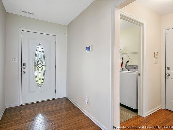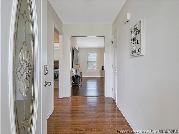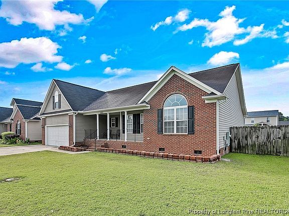 Well maintained house in a central location, convenient to Fort Liberty, 295 bypass and shopping. Privacy fenced back yard with a deck and an irrigation system (unwarranted). The front porch has room for your rocking chairs for porch sitting! The double garage floor has recently be epoxied. Enter the house into a welcoming foyer. The living room, dining area and kitchen are open concept. The fireplace has gas logs, but has not been used by the current owner. The primary bedroom has TWO closets and is located on the main floor. The laundry room is also handily located on the main floor, close to the Primary. 2 secondary bedrooms are also on the main floor but on the opposite end of the house offering a little separation between bedrooms. A fourth bedroom is upstairs over the garage and is huge. It can be used as a bedroom (w a closet) or a bonus room. Please be aware of the ring doorbell during showings.